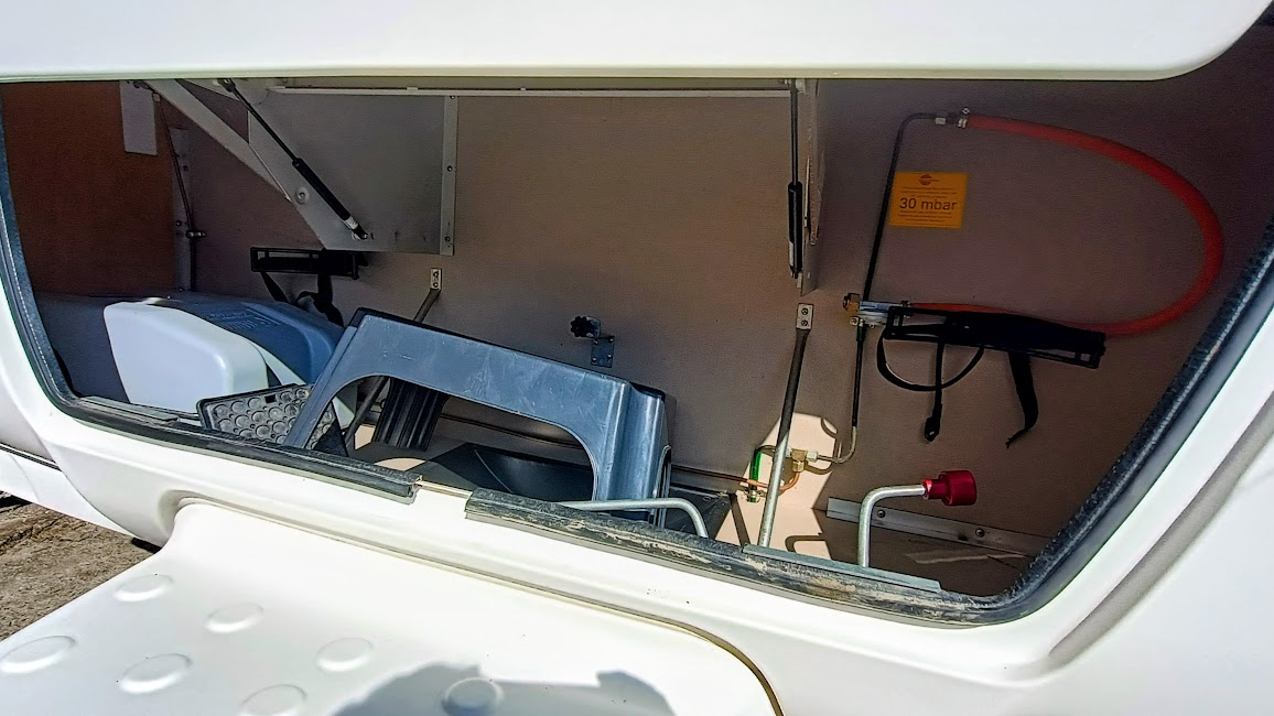 * Přívěs disponuje koupelnou s umyvadlem, sprchovou vaničkou vč. kazetového WC