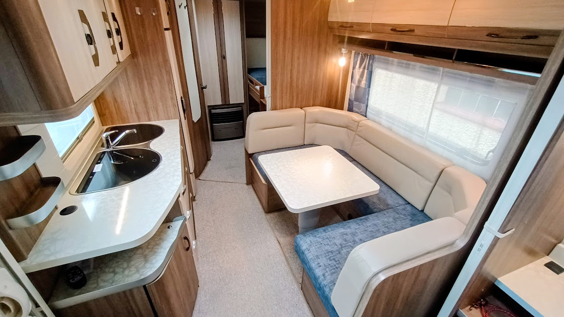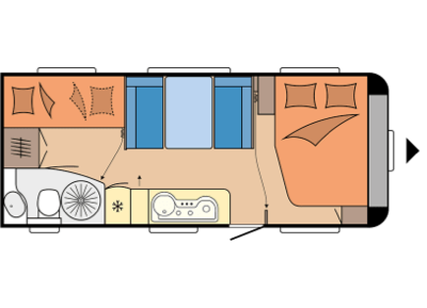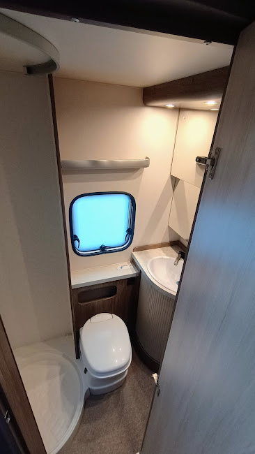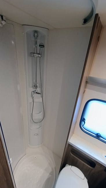 * Přívěs disponuje koupelnou s umyvadlem, odděleným sprchovým koutem, vč. kazetového WC