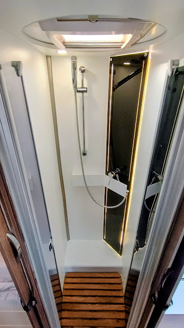 * kombinované topení + ohřev vody (Truma plyn / 230V)