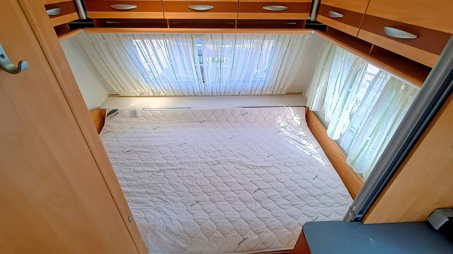 * Vpředu pevné lůžko napříč, pod ním ohromný úložný prostor přístupný také zvenku.