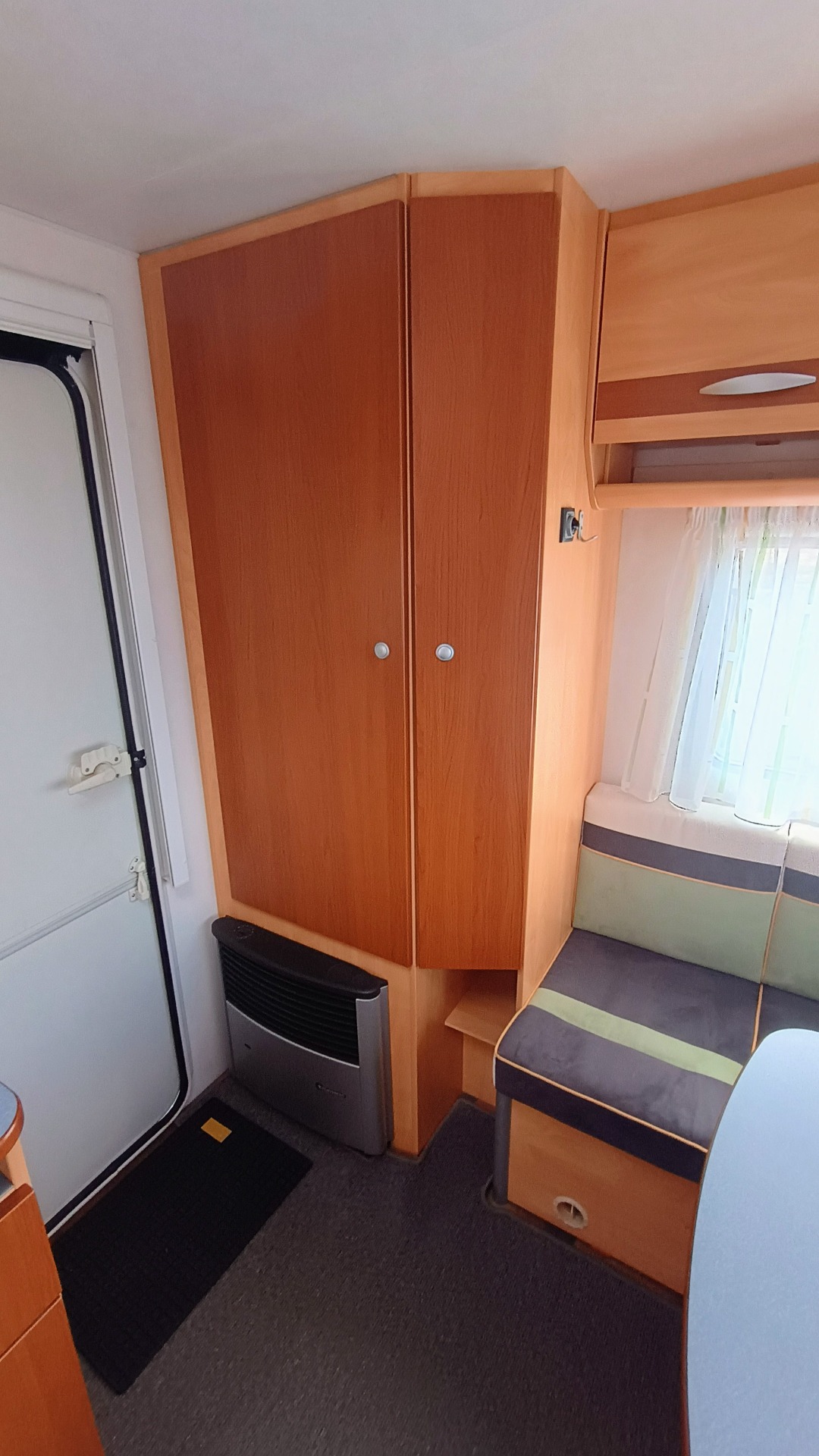 * Vzadu sezení, které můžete rozložit na další lůžko, dále pak šatní skříň + plynové topení