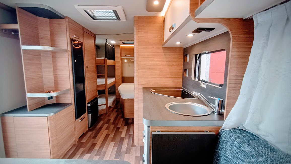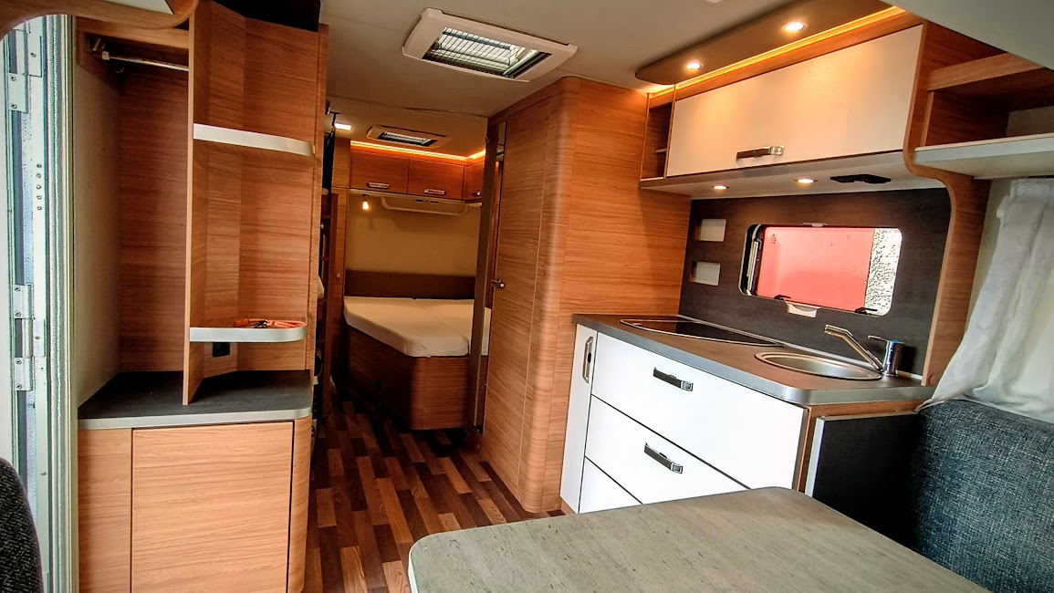 * nádrž na čistou vodu ca 50l, sporák 3x plotýnka, kombinovaná lednice s mrazákem 134 + 12l, 3x střešní okno. Všechna okna jsou vybavena termožaluzií a moskytiérou s tlumícími dojezdy, moskytiéra též ve dveřích
